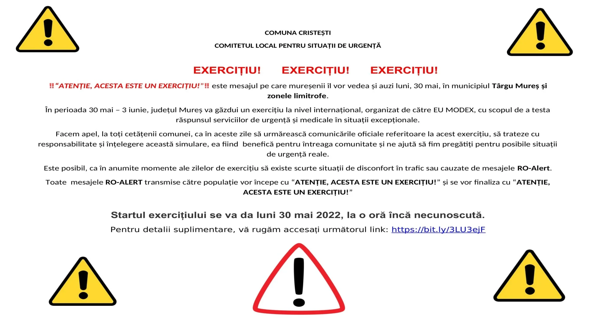 ANUNȚ! EXERCIȚIU LA NIVEL INTERNAȚIONAL