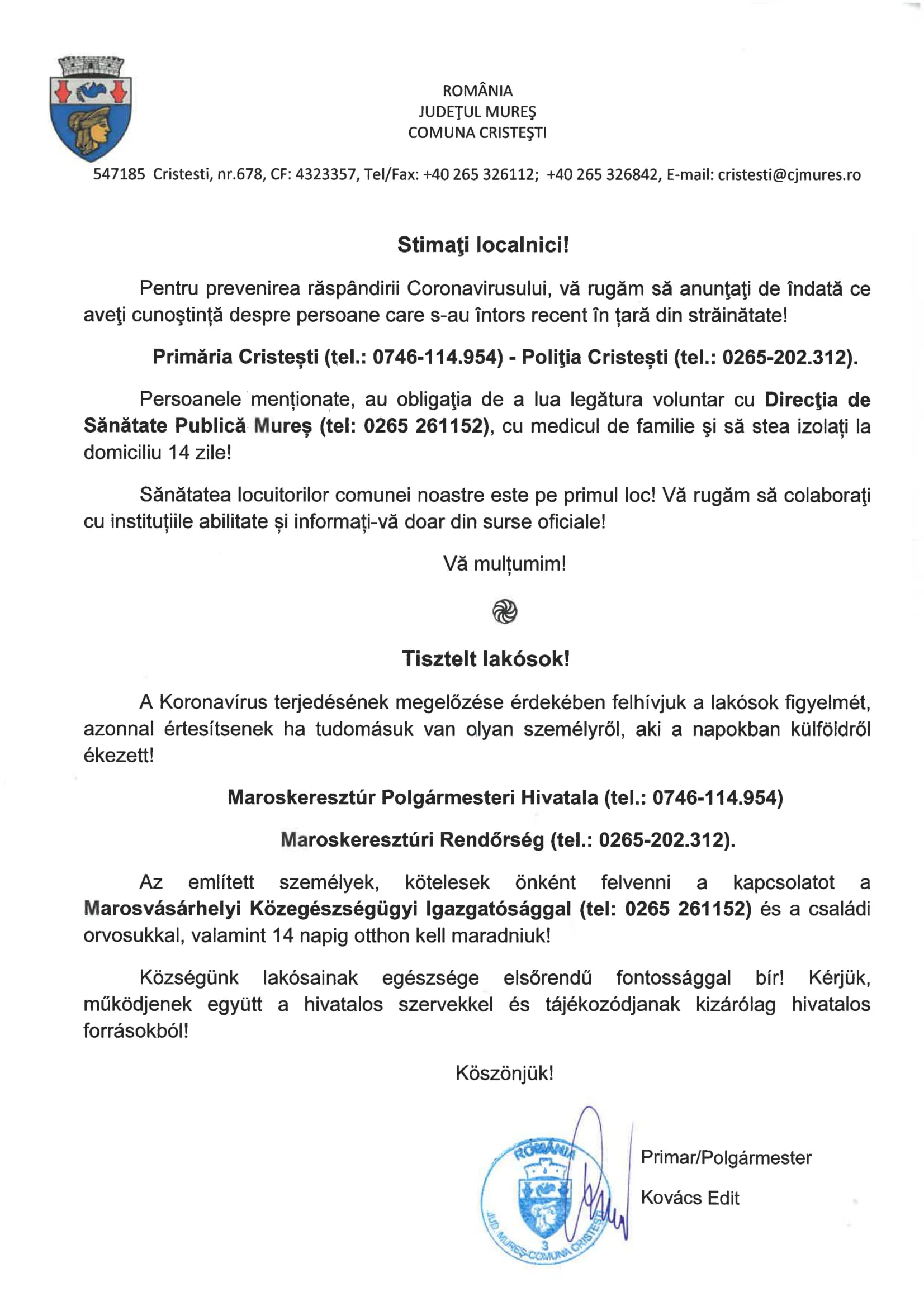 Directia de Sanatate Publica Mures – materiale CORONAVIRUS